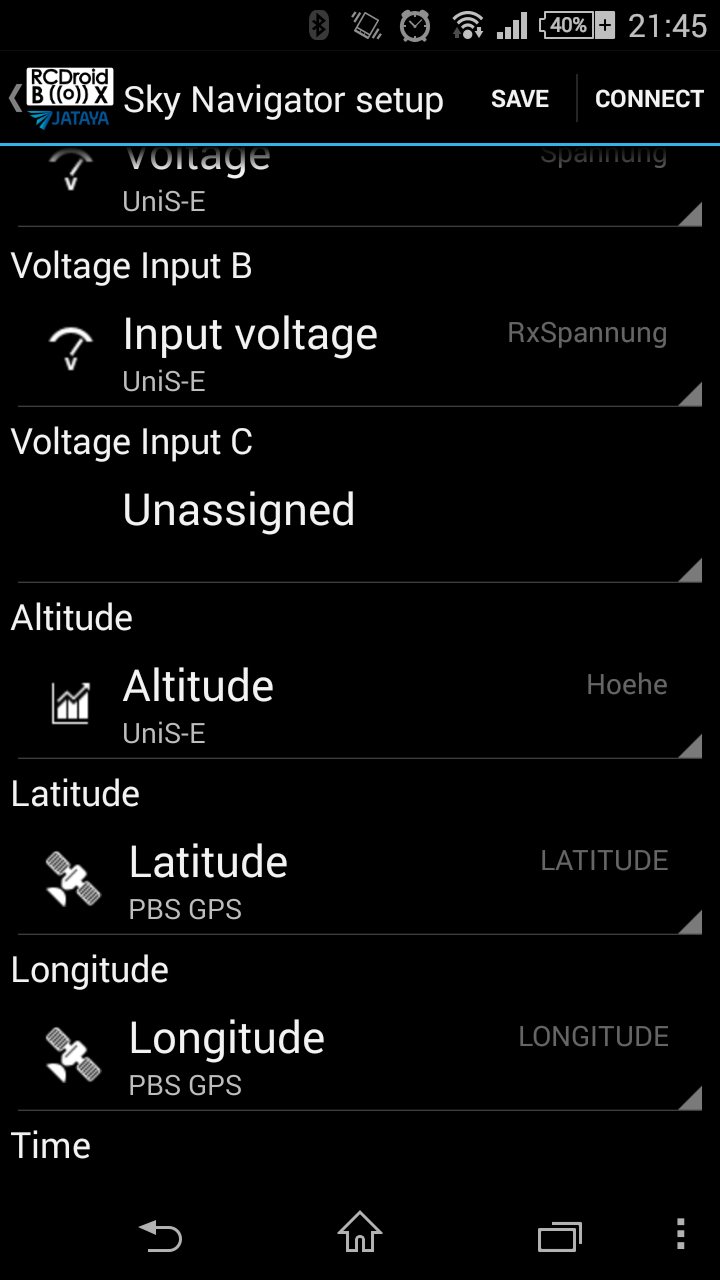 Up until now, a dedicated equipment with a telemetry link was needed in order to use the SkyNavigator. For the users of JETI telemetry, we have changed this! Using RCDroidBox, the data from Jeti MGPS, SM-Modellbau´s GPS Logger, or any other JETI EX compatible GPS sensors can be used with SkyNavigator.